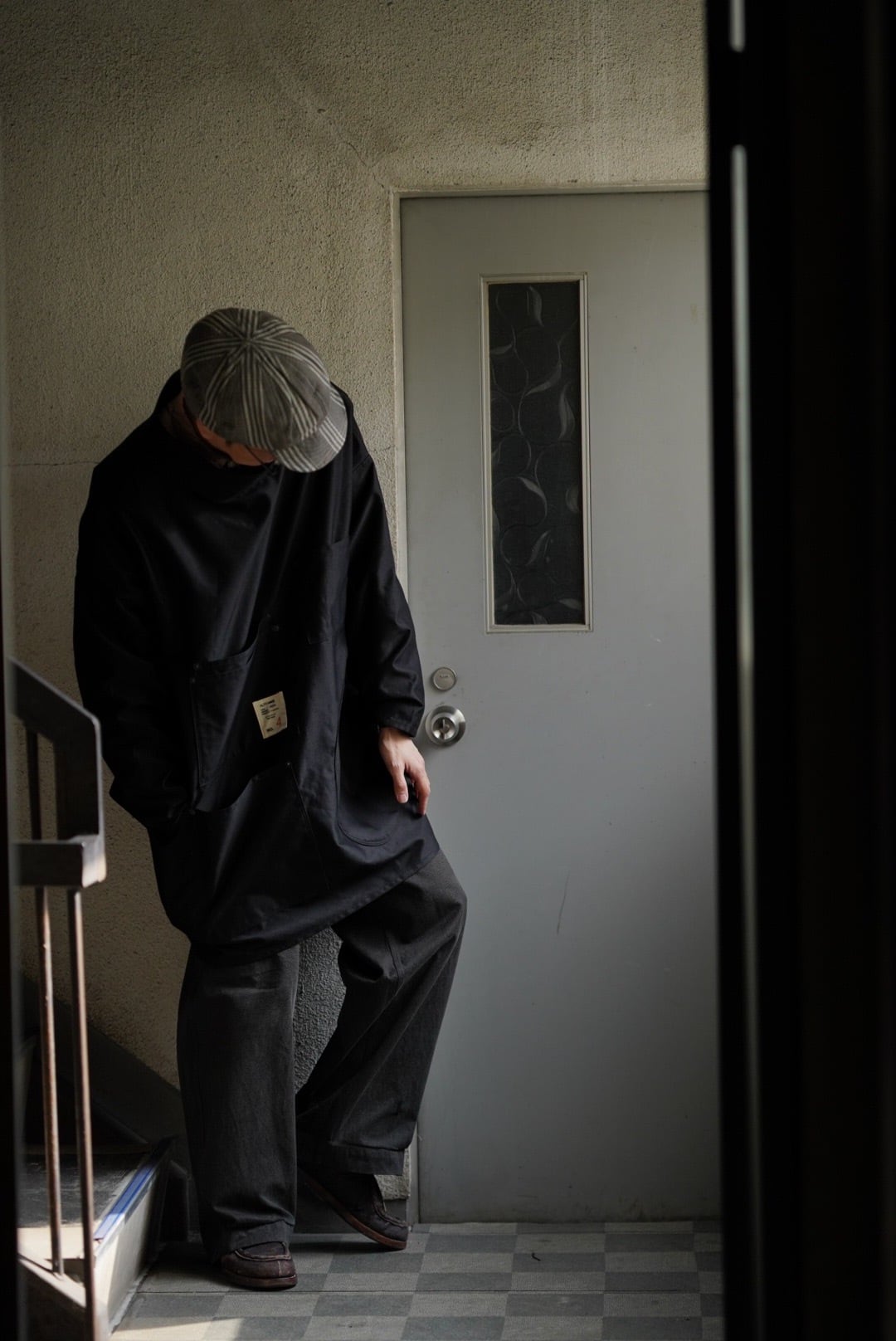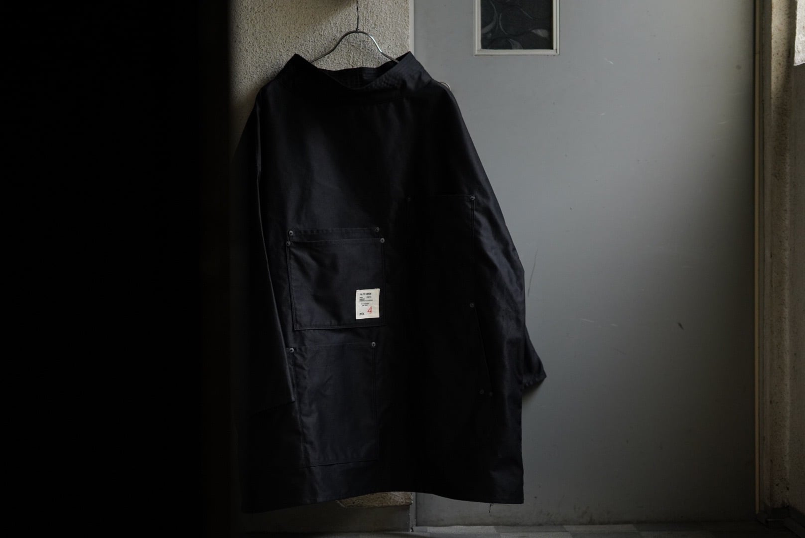 ALTT MADE の新しいスタンダード。 角袖のような平面的なビッグシルエットのコート。 肩を落とし体をズッポリと覆い込む独特のシルエットです。 ALTT MADE の4周年記念アイテムで、国産の赤耳ブラックシャンブレーを使用。 シャツライクにも羽織れる軽さで長いシーズンを楽しんで欲しい。 ボタンは大きく艶の強い黒蝶貝。 メタルのリベットとの組み合わせが印象的な洋服です。 Material : cotton 100% Color : grey Size : free 肩幅 : 79cm 身幅 : 93cm 着丈 : 86cm 袖丈 : 46cm 生地の風合いや状態など個体差のある商品です。 詳しくはお問合せください。 お電話、メール、インスタグラムのメッセージ。 なんでも結構です。