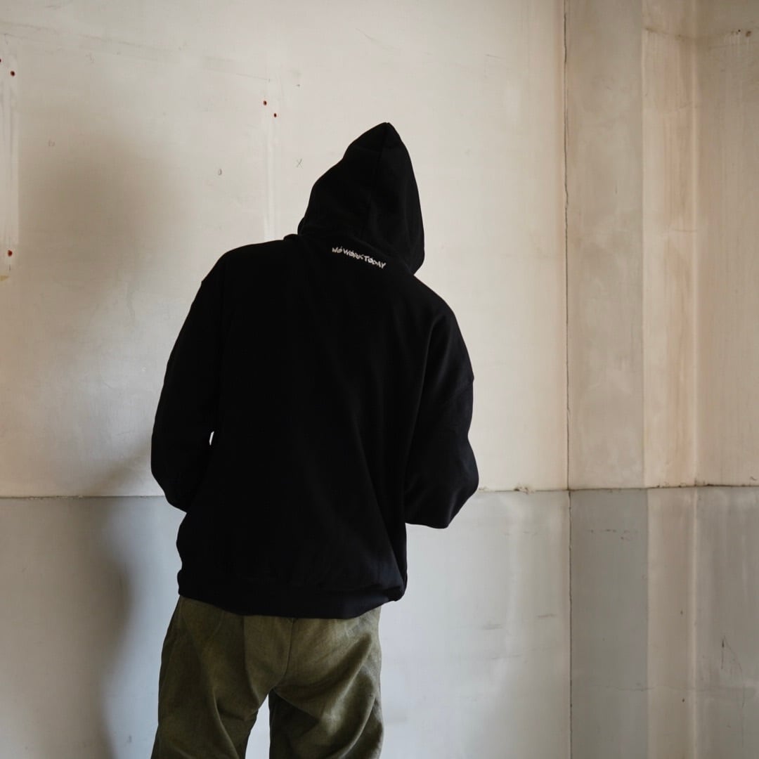 エッジを利かせた白の刺繍がフードの裏に隠れます。