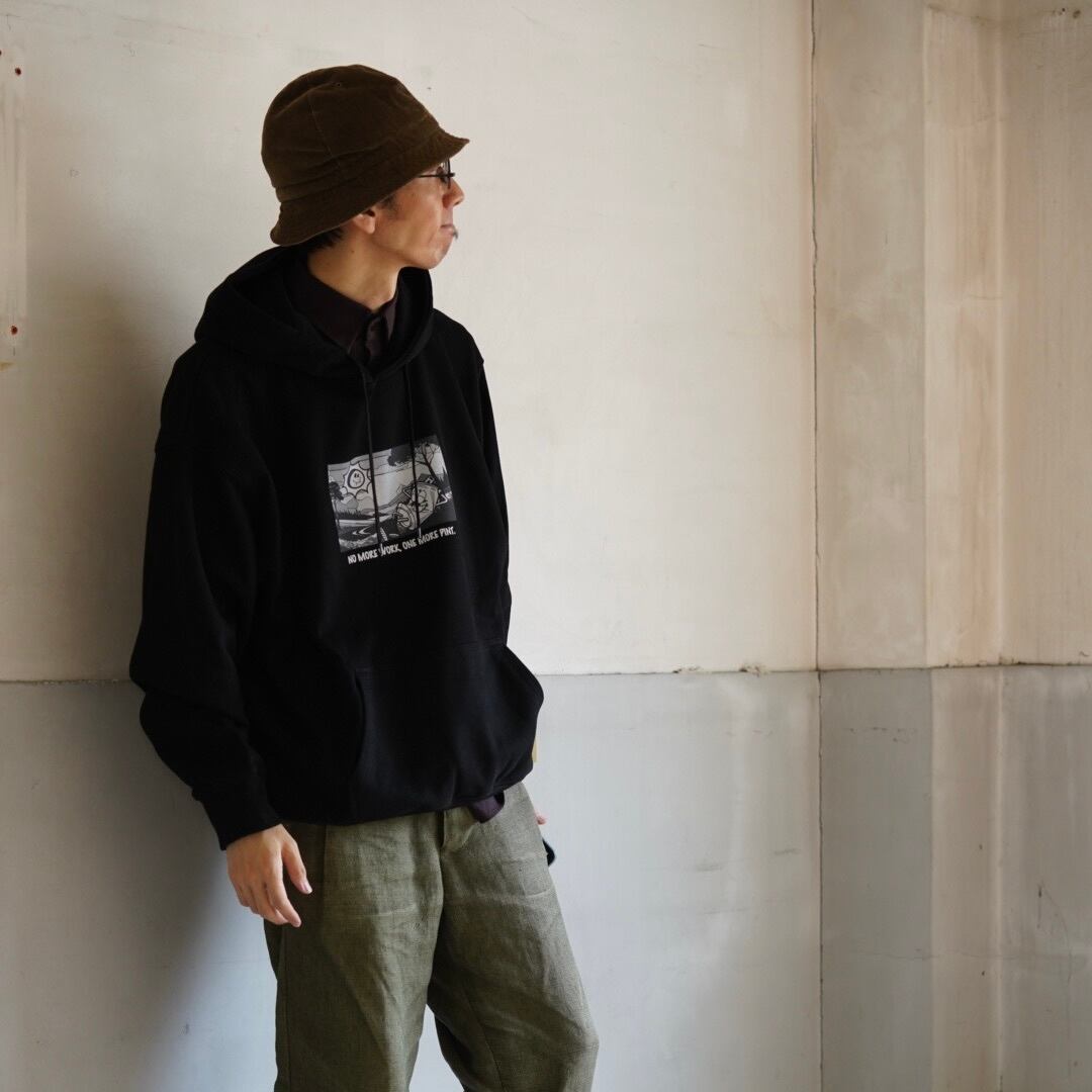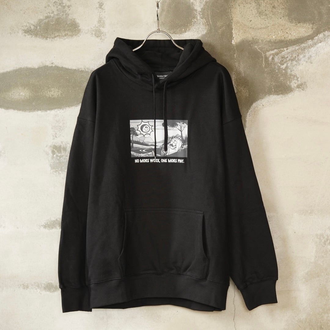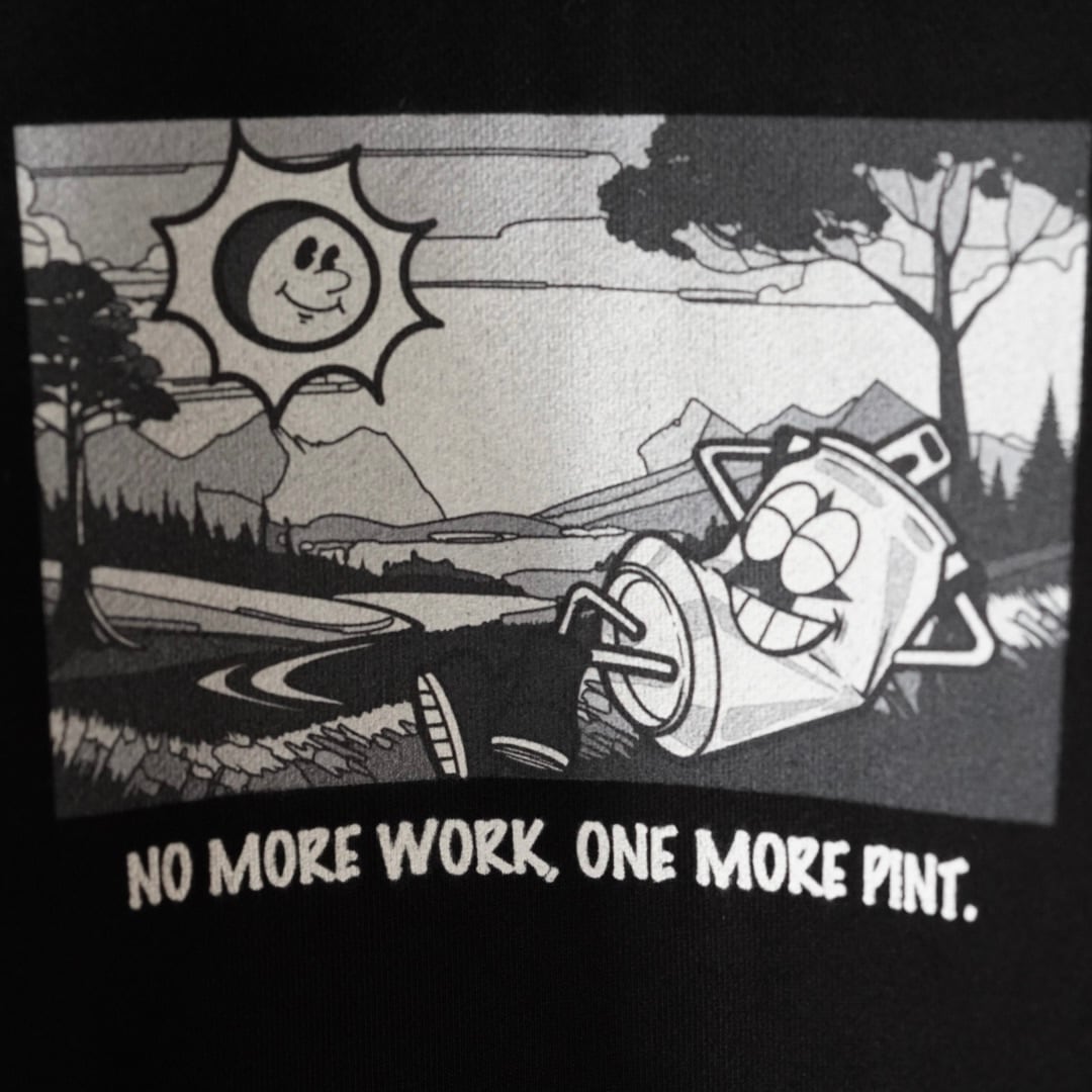 ひょうきんなフロントプリントに”NO MORE WORK, ONE MORE PINT”の文字。