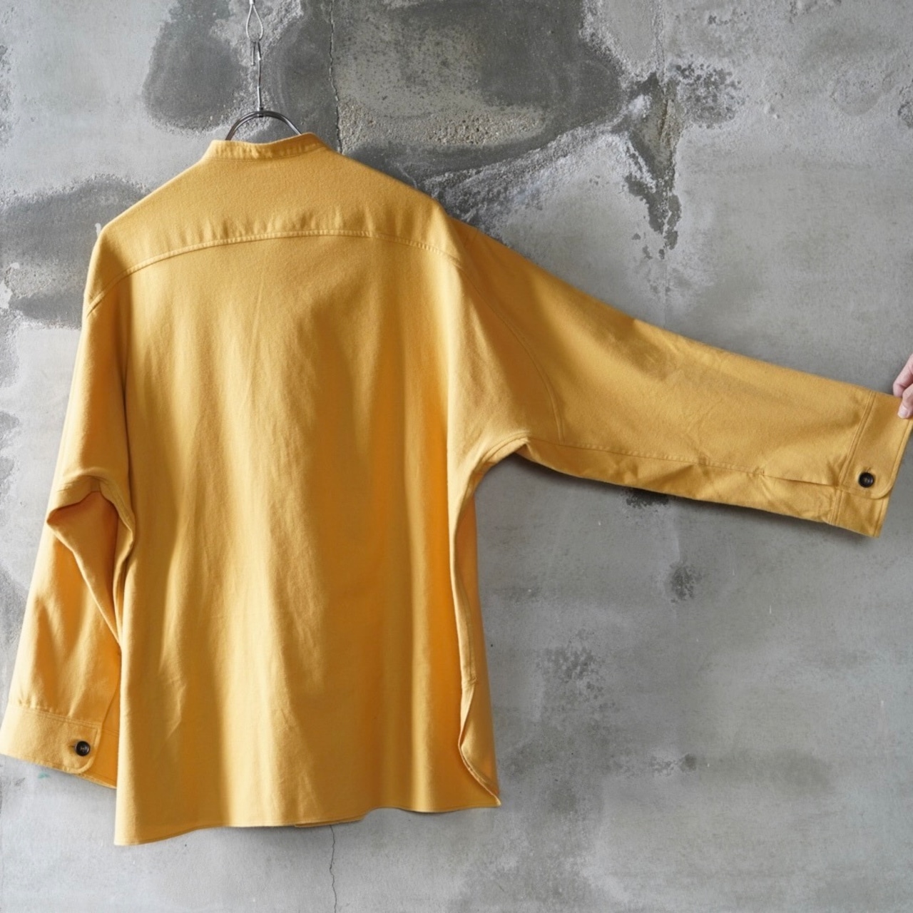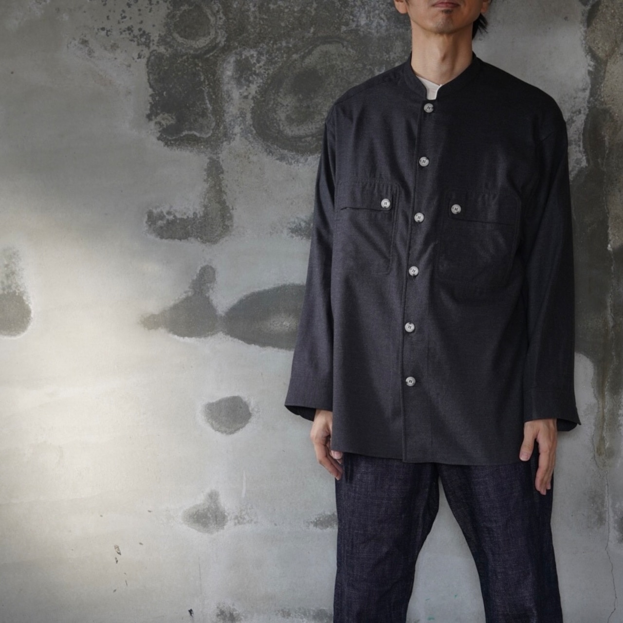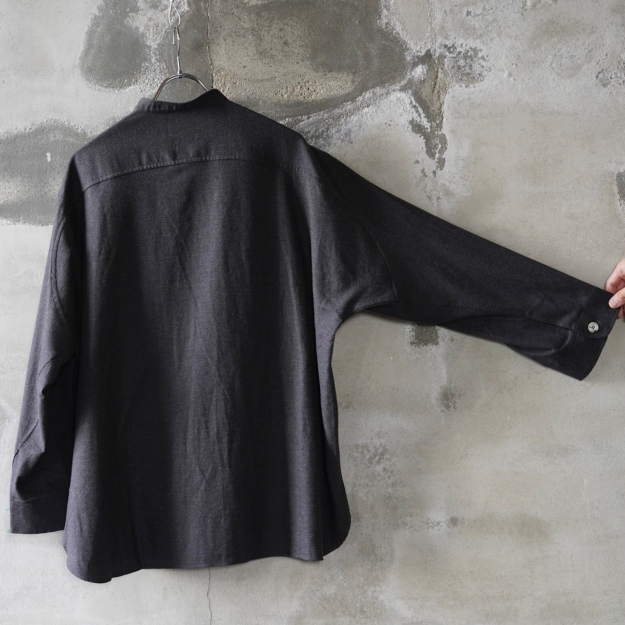 ゆるく甘く、トロンと流れる両面ネルのオーバーサイズのバンドカラーシャツ。