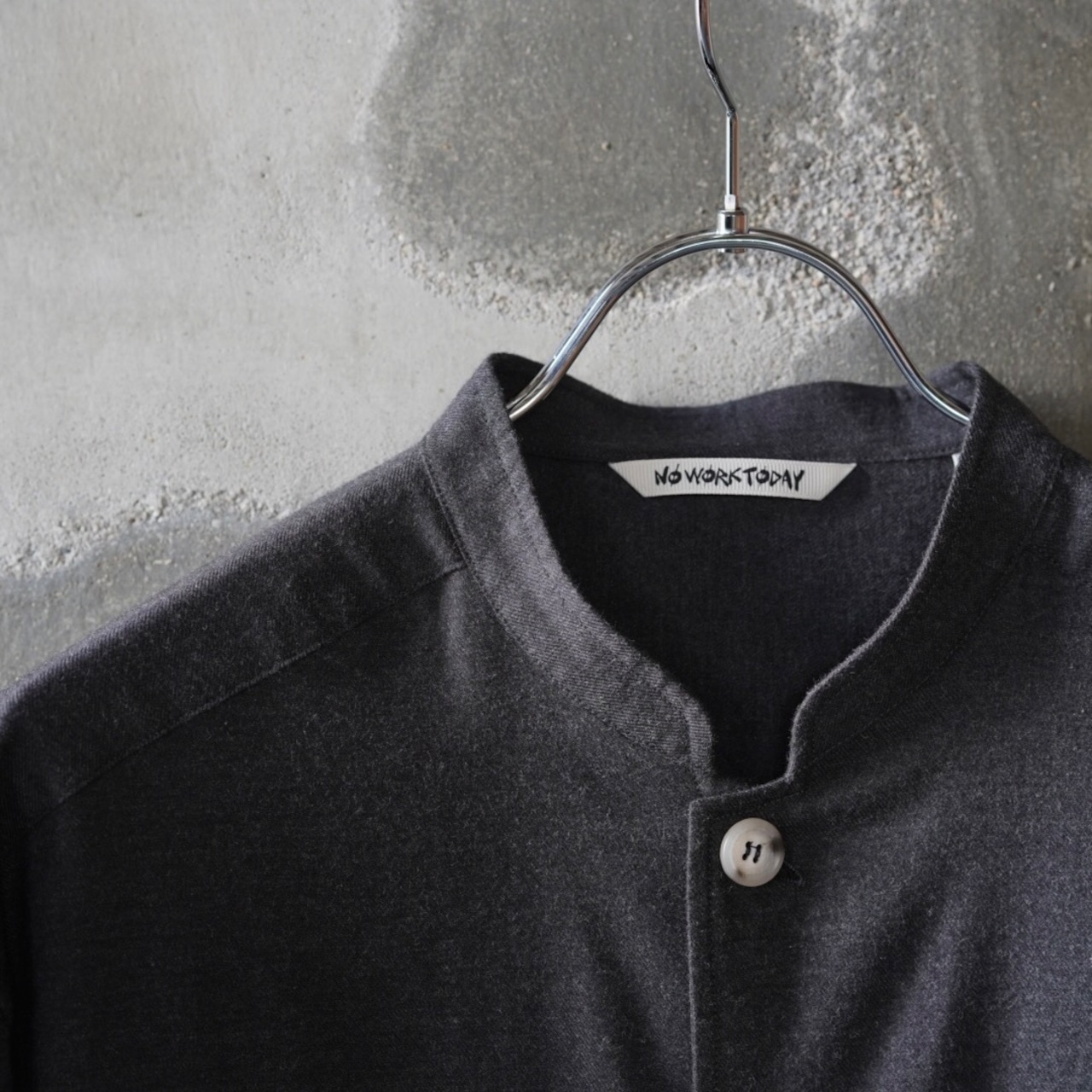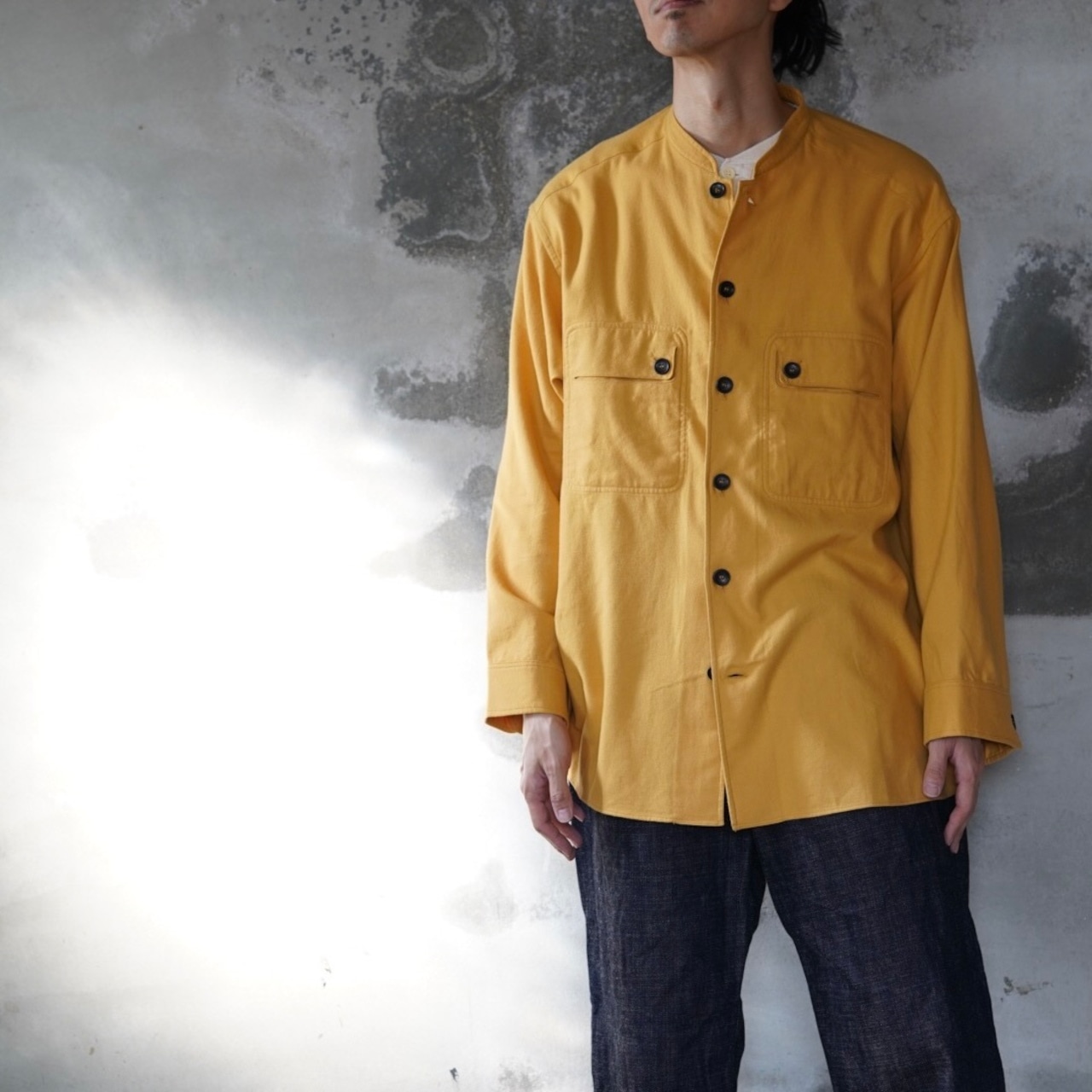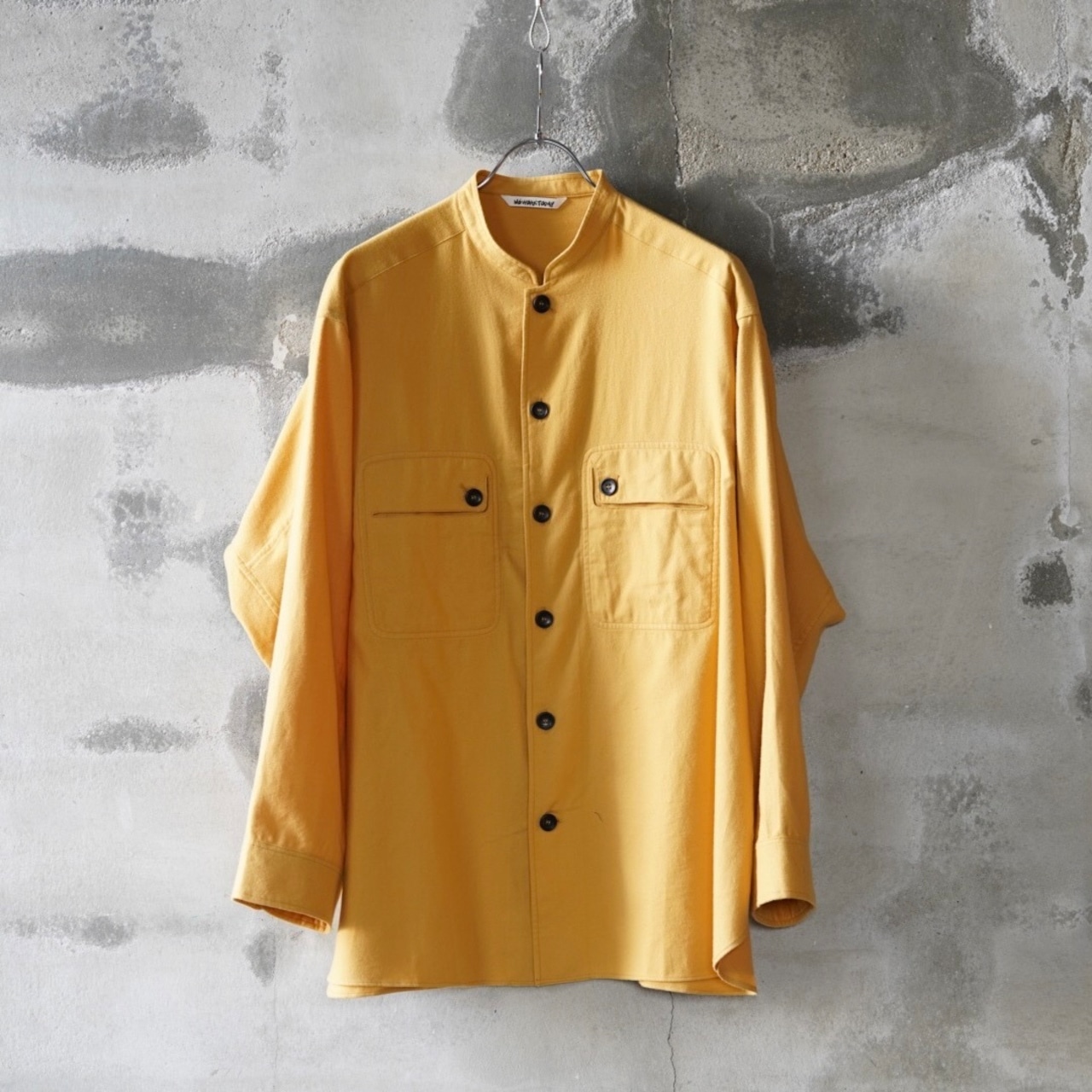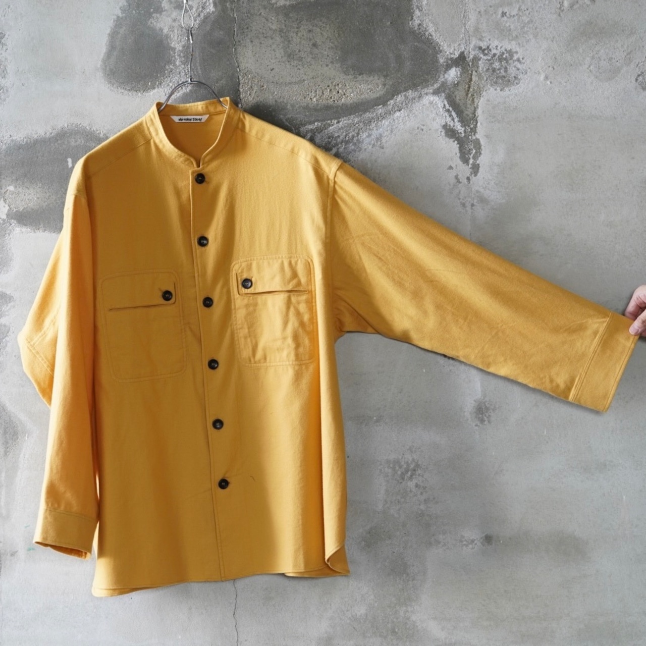 ゆるく甘く、トロンと流れる両面ネルのオーバーサイズのバンドカラーシャツ。