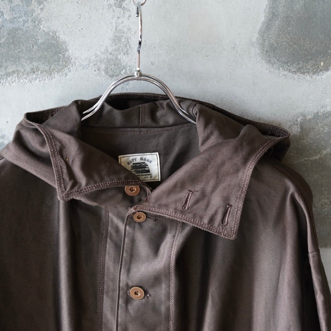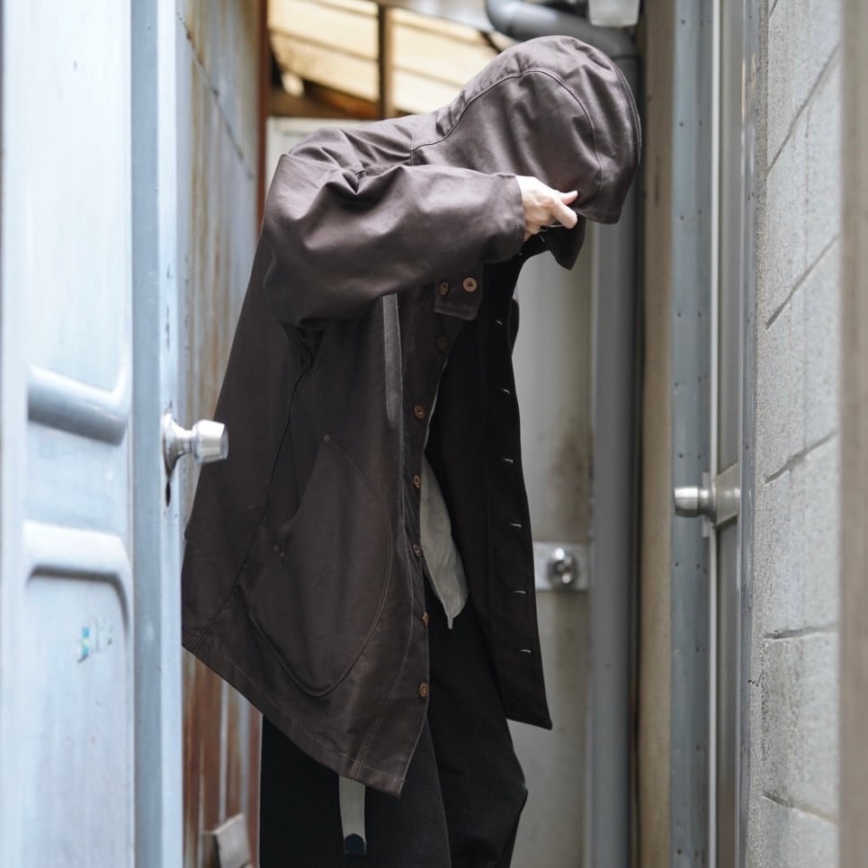深い色味と艶感のある国産のモールスキンを使用した、フーディ。