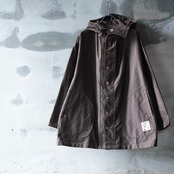 4枚接ぎの立体的なフードや全体のディテールは40年代の山岳部隊をイメージソースに、メタルの縫い付けのボタンがズラッと並ぶフロントディテールのインパクトがある洋服です。