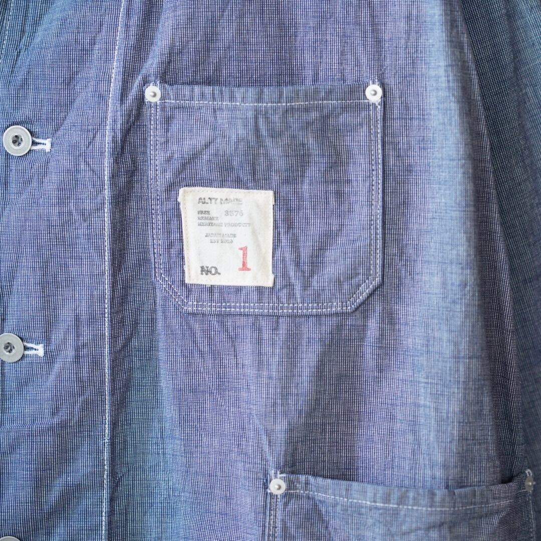 イギリスのショップコートをベースにした、強撚のコットンで軽いコート。