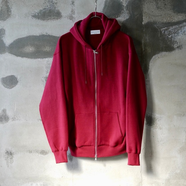 和歌山で稼動する吊り編み機の中でも中後期に開発された、アズマ編み機のとても柔らかなダブルジップパーカー。 スクエアなシルエットと長めのリブでカジュアルなスタイリングに重宝するベーシックなアイテムの着心地を追求した洋服。 フードはダブルフェイスの仕様で、ドローストリングは袋縫ではないがフードの接ぎにループを作りそこを通すことで、フード内で紐が遊ばないようになっている。 スポーティな洋服だからこそ、大人映えを意識したディテールが良い。 Material : cotton 100% Color : cassis, emerald, top grey Size : 2 肩幅 : 57cm 身幅 : 59cm 着丈 : 67cm 袖丈 : 61cm 詳しくはお問合せください。 お電話、メール、インスタグラムのメッセージ。 なんでも結構です。